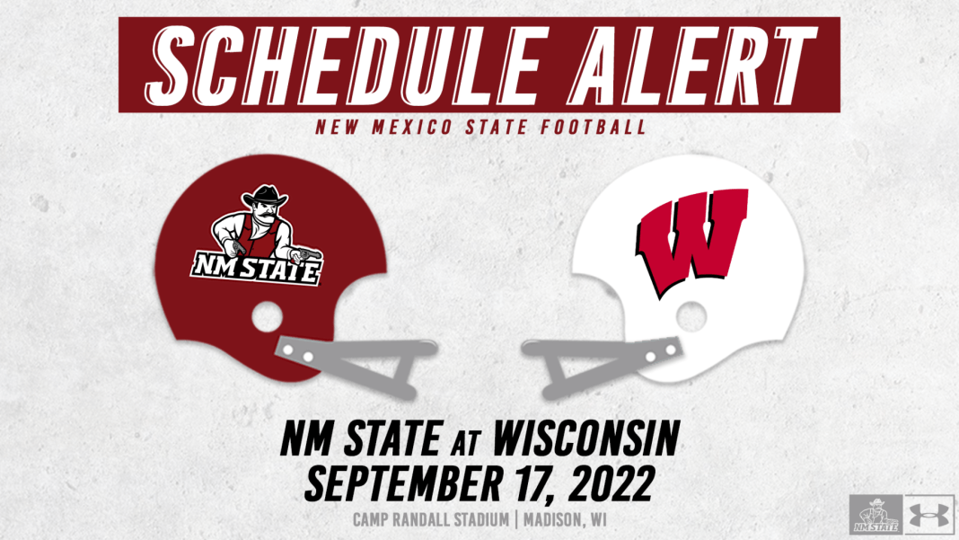 The right guy at the right time. New Mexico State quarterback Gavin Frakes’ throw bounced off their running back’s facemask. Linebacker Maema Njongmeta caught the ball and set the Badgers up for a two-yard touchdown.