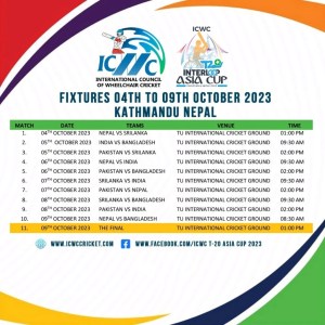 I have been granted a remarkable opportunity to cover a very special event. Thanks to Ms. Ghazal Khan, I will be writing articles about the 2023 Asia Cup of Wheelchair Cricket. The tournament is organized by the International Council of Wheelchair Cricket and sponsored by Interloop and the Pakistan Cricket Board. Officially, it is named the Interloop T-20 Asia Cup, which will be co-organized by Pakistan and Nepal. The games can be watched live on Action Sports HD 1, a Nepali sports channel.