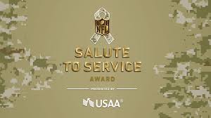 The Salute to Service Award is part of the NFL and USAA’s year-round commitment to recognize and honor the military and veteran community. Through the Salute to Service initiative, the NFL and its teams come together to honor, empower and connect with service members, veterans and their families. The 32 award nominees from each team were announced in November and consisted of active and retired players, coaches and team executives and personnel who best demonstrated support for the military community.