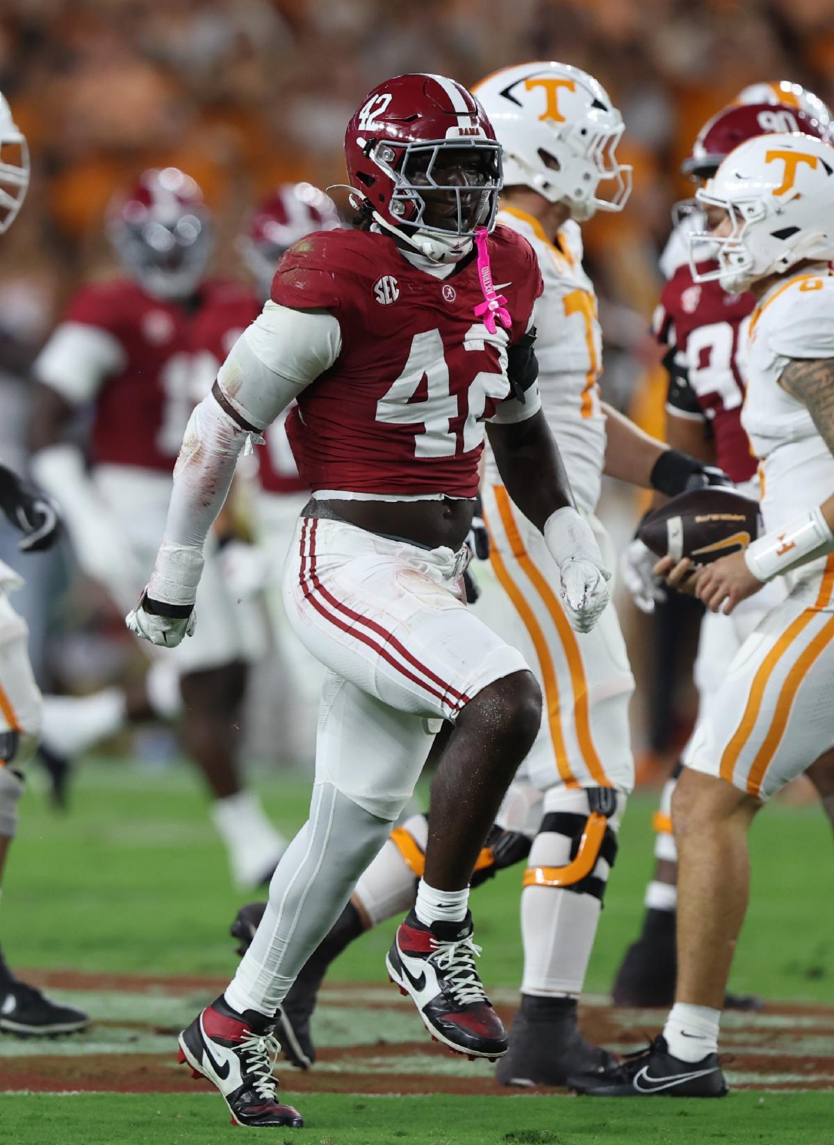 Yhonzae Pierre delivered a dominant defensive performance for Alabama in their 37–20 win over Tennessee on Saturday. The edge rusher racked up six total tackles, including three tackles for loss and three sacks, showcasing his explosiveness and relentless motor. Pierre also pressured Tennessee quarterback Joey Aguilar into a second-quarter safety, a pivotal moment that swung momentum in Alabama’s favor. With injuries along the defensive front, Pierre seized the opportunity to step into a larger role and made the most of it. His speed off the edge and ability to disrupt plays in the backfield were instrumental in stifling Tennessee’s offense. Pierre’s outstanding effort not only helped secure the win but also solidified his status as a rising defensive force for the Crimson Tide.