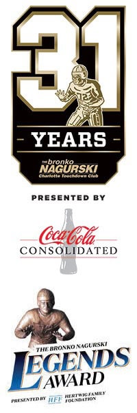 The Charlotte Touchdown Club is a 501(c)3 non-profit organization founded in 1990 for the purpose of promoting high school, collegiate, and professional football in the Charlotte, North Carolina region. Since its inception, the club has grown as well as diversified boasting a sponsor team of more than 80 companies. The Club’s activities and services focus community attention on the outstanding Citizenship, Scholarship, Sportsmanship, and Leadership of area athletes and coaches. Through individual and corporate support, nearly $3,000,000 has been raised and donated to benefit the Touchdown Club’s scholarship efforts.